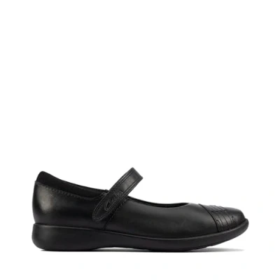 Clarks Girl's Etch Beam K Ballet Flat, Black Leather, 13.5 UK Child