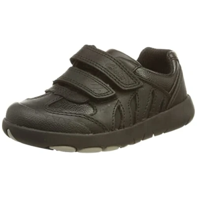 Clarks Girl's Rex Stride T Sneaker, Black Leather, 9 UK Child
