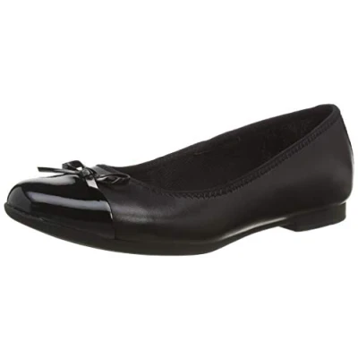 Clarks Girl's Scala Bloom Y Ballet Flats, Black Leather, 4 UK Wide