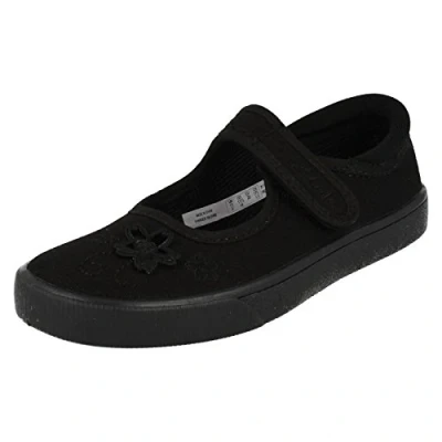 Clarks Girls Hopper Go Ballet School Shoes, Black Fabric, 11 UK Child