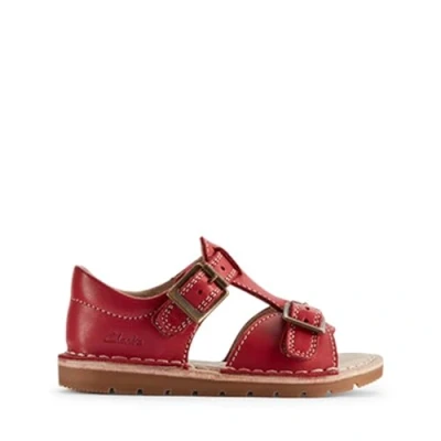 Clarks Girls Playsunreef T. Flat Sandal, Red Leather, 4.5 UK Child