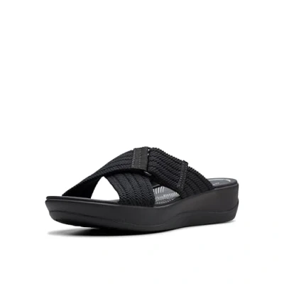 Clarks Women's Arla Wave Slide Sandal, Black Textile, 4 UK