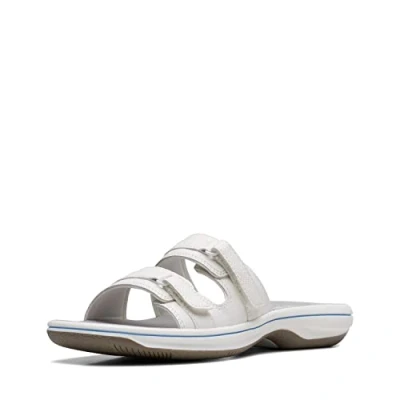 Clarks Women's Breeze Piper Slide Sandal, White Synthetic, 6.5 UK