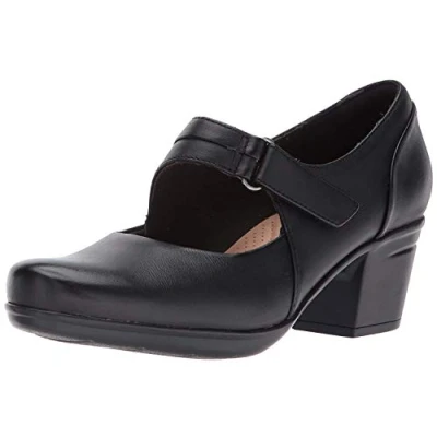 Clarks Women's Emslie Lulin Dress Pump, Black Leather, 4.5 UK Wide