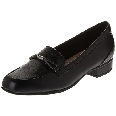 Clarks Women's Juliet Shine Loafer, Black Croc Print Leather, 8