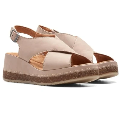 Clarks Women's Kassanda Step Sandal, Sand Nubuck, 3 UK