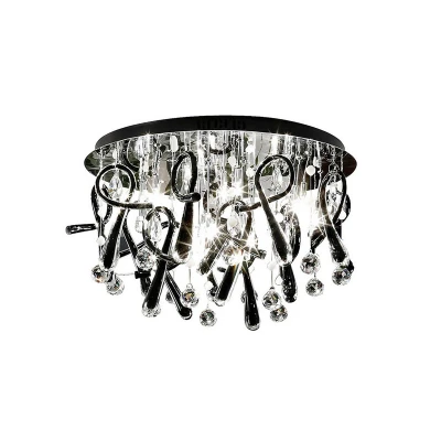 Class Flush Ceiling Round 20 Light G4 Polished Chrome/Black Glass/Crystal