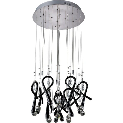 Class Pendant Round 10 Light G4 Polished Chrome/Black Glass/Crystal, NOT LED/CFL Compatible