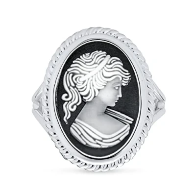 Classic Antique Vintage Victorian Style Women Framed Portrait Black White Oval Carved Cameo Ring For .925 Sterling Silver