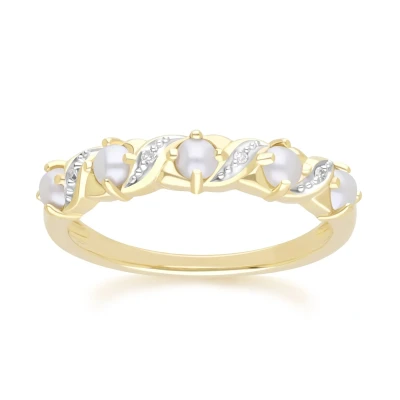 Classic Art Nouveau Style Pearl & Diamond Eternity Ring in 9ct Yellow Gold Size: P