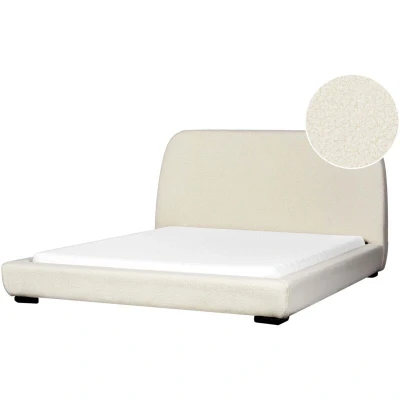 Classic Boucle Upholstered with Headboard EU King Size Bed Frame 5ft3 Slatted Cream Roisel
