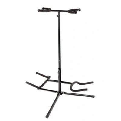 Suitable for guitar, bass, banjo, etc. Robust tubular construction, adjustable height 70-83 cm Footprint: 53 x 53 cm, folded in foot braces Lightweight: 1.5 kg, security seal (rubber) Black foam rubber padding on the support arms