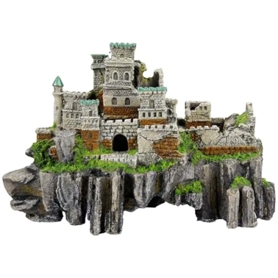 Epic Castle Ruins Design – Stunning clifftop castle ruin with detailed stonework, arches, and towers, perfect for creating a dramatic and magical fantasy-themed aquarium setup. Spacious Hideouts & Swim-Throughs – Multiple openings and chambers provide ideal hiding spots for fish, reducing stress and encouraging natural exploration. Aquarium Safe Materials – Made from high-quality, non-toxic resin, safe for all freshwater aquariums and designed for long-term underwater use. Hand-Painted Detailing – Expertly crafted with realistic aged stone textures and moss effects for an authentic, weathered look. Large Statement Piece – Measuring 375 x 223 x 250mm, this eye-catching decoration is ideal for medium to large aquariums.