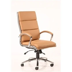 Large contoured seat with waterfall front. Two lever infinite lock any position mechanism. Soft Bonded Leather. Solid robust frame. Matching chrome 5 star base, frame and arms. Fixed padded arms.