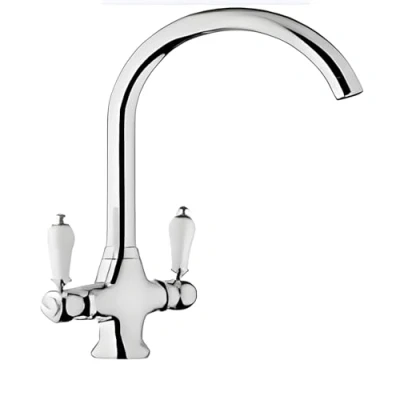 Classic Kitchen Mixer Genova, with Swivel Spout and Twin levers White Ceramic Look
