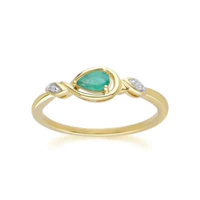 Classic Pear Emerald & Diamond Ring In 9ct Yellow Gold