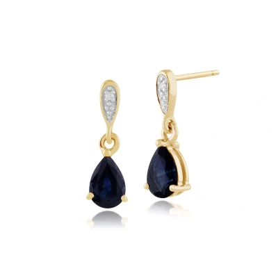 Classic Pear Sapphire & Diamond Drop Earrings in 9ct Yellow Gold