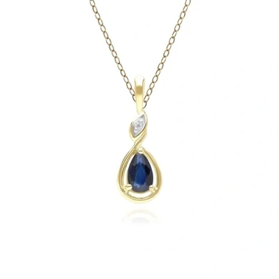 Classic Pear Sapphire & Diamond Pendant Necklace In 9ct Yellow Gold