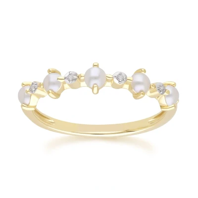 Classic Pearl & Diamond Eternity Ring in 9ct Yellow Gold Size: P