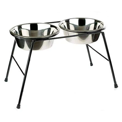 Item display weight: 2.74 kilograms Easty to Assemble Sturdy Construction Suitable for taller dogs Dishes lift out easily for filling and cleaning Stainless steel does not absorb food odours Dishes are dishwasher safe
