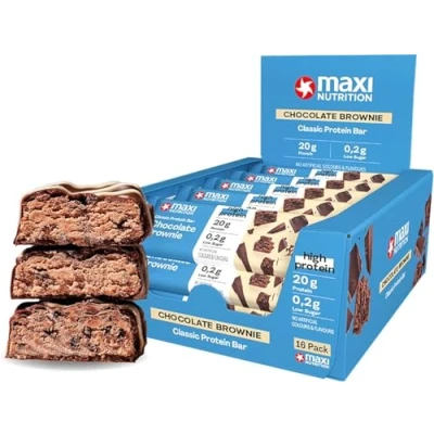 Each bar contains 20 g of protein. Low sugar/low fat: with only 0.2 g sugar and 3.5 g fat Our classic protein bars come without artificial flavours, added sugar, dyes and palm oil. We only process raw materials of the highest quality and manufacture mainly in our own production. 16 x 40 g MaxiNutrition Classic Protein Bar Chocolate Brownie.