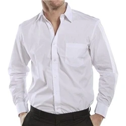 65/35% polycotton. Stiffened collar. Left breast pocket. Button Cuffs.