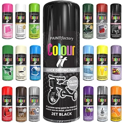 Classic Signature 1 x All Purpose Black Gloss Aerosol Spray Paint 400ml Quick Drying Spray,Fast Dry and Excellent Coverage for Metal, Wood, Plastic More