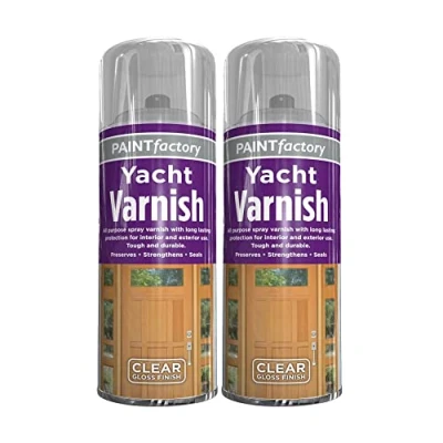 Classic Signature 2 x All Purpose Yacht Aerosol Varnish 250ml / Pair of Disposable Gloves, Professional Finish Spray, Wood Colour Paint, Long Lasting Protection