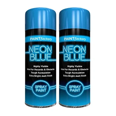 Classic Signature 2 x Neon Blue 200ML, Spray Paint Aerosol Fluorescent Bright Graffiti (Banksey) Matt Finish