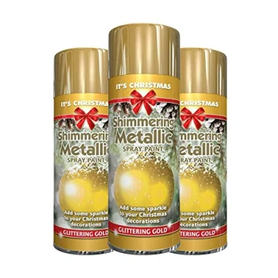 Classic Signature 3 x Glitter Metallic Christmas Gold Spray Paint 200ml Decorative, Creative, Dazzling Effect to Your Hobby Art and Craft Use