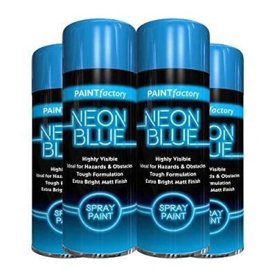Classic Signature 4 x Neon Blue 200ML, Spray Paint Aerosol Fluorescent Bright Graffiti (Banksey) Matt Finish