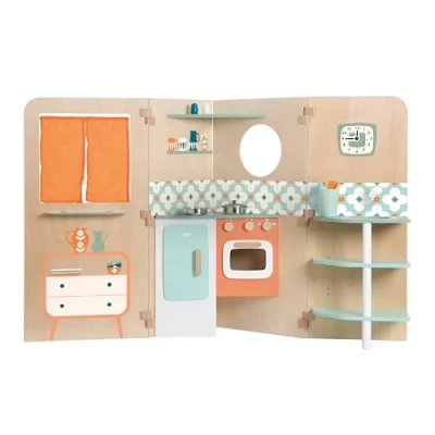 Classic World My Little Home, Role Play Kitchen, Wooden Vintage Fold Out House with Multiple Rooms, Easy Compact Storage, Non Toxic Paint, 3 Years+, 14 Pieces, 140 x 56 90 cm
