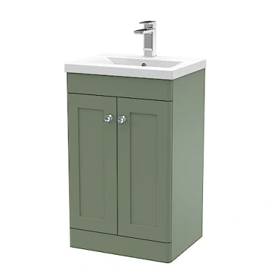Classique Floor Standing 2 Door Vanity Unit with Basin 1 500mm Wide Satin Green Nuie