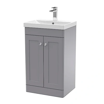 Classique Floor Standing 2 Door Vanity Unit with Basin 3 500mm Wide Satin Grey Nuie