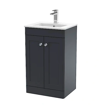 Classique Floor Standing 2 Door Vanity Unit with Basin 500mm Wide Satin Anthracite Nuie