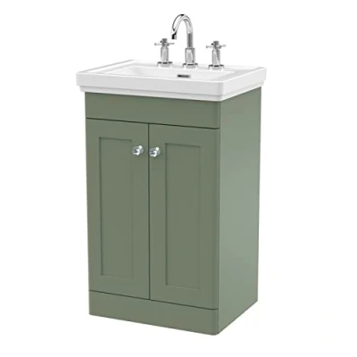 Classique Floor Standing 2 Door Vanity Unit with Basin 500mm Wide Satin Green 3 Tap Hole Nuie