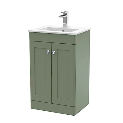 Classique Floor Standing 2 Door Vanity Unit with Basin 500mm Wide Satin Green Nuie