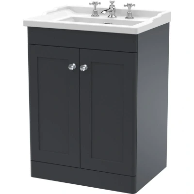 Classique Floor Standing 2 Door Vanity Unit with Traditional Basin 600mm Wide Satin Anthracite 3 Tap Hole Nuie