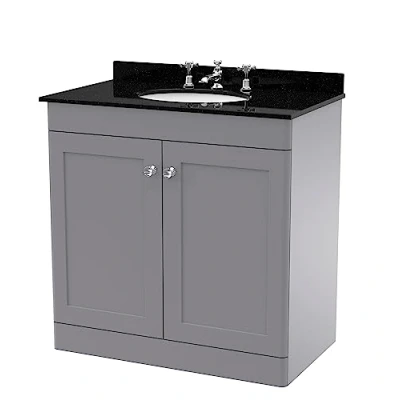 Classique Satin Grey 800mm 2 Door Vanity Unit with Black Marble Countertop and Round Basin 3 Tap Holes CLC226BR3 Nuie