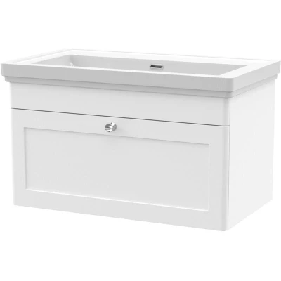 Classique Satin White 800mm Wall Hung Single Drawer Vanity Unit and 66mm Profile Basin CLC196H Nuie