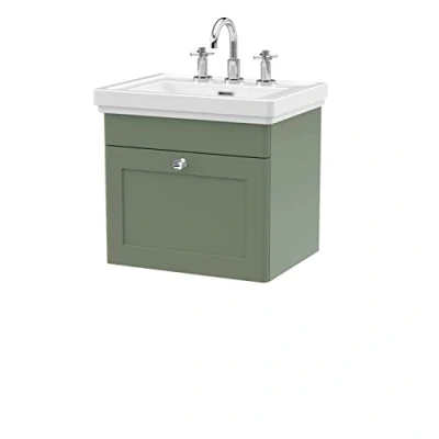 Classique Wall Hung 1 Drawer Vanity Unit with Basin 500mm Wide Satin Green 3 Tap Hole Nuie