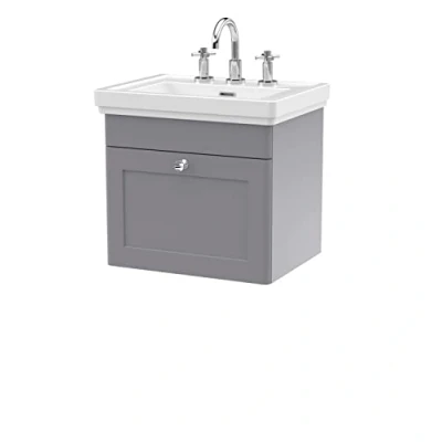 Classique Wall Hung 1 Drawer Vanity Unit with Basin 500mm Wide Satin Grey 3 Tap Hole Nuie
