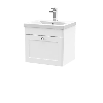 Classique Wall Hung 1 Drawer Vanity Unit with Basin 500mm Wide Satin White Nuie