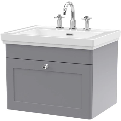 Classique Wall Hung 1 Drawer Vanity Unit with Basin 600mm Wide Satin Grey 3 Tap Hole Nuie
