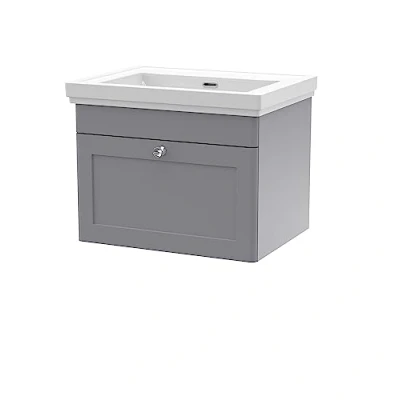 Classique Wall Hung 1 Drawer Vanity Unit with Classic Basin 600mm Wide Satin Grey 0 Tap Hole Nuie