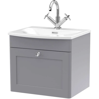 Classique Wall Hung 1 Drawer Vanity Unit with Curved Basin 500mm Wide Satin Grey Nuie