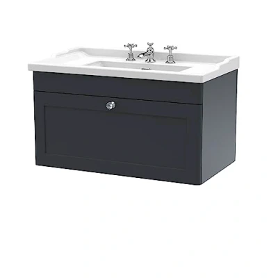 Classique Wall Hung 1 Drawer Vanity Unit with Traditional Basin 800mm Wide Satin Anthracite 3 Tap Hole Nuie