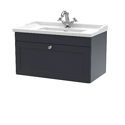 Classique Wall Hung 1 Drawer Vanity Unit with Traditional Basin 800mm Wide Satin Anthracite Tap Hole Nuie