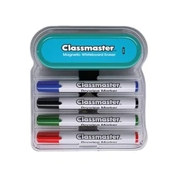 Organiser for magnetic whiteboards. Provides convenient storage and easy access. Comes with 4 bullet tip drywipe markers in black, blue, red and green. Also comes with a large magnetic whiteboard eraser.