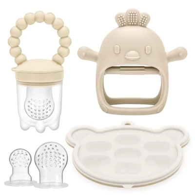 CLDY Baby Fruit Food Feeder & Breastmilk Popsicle Freezer Molds, Dummy Feeder, BPA Free Silicone Teether for Toddler Infant 3 Month+ Teething Self Feeding (Beige)